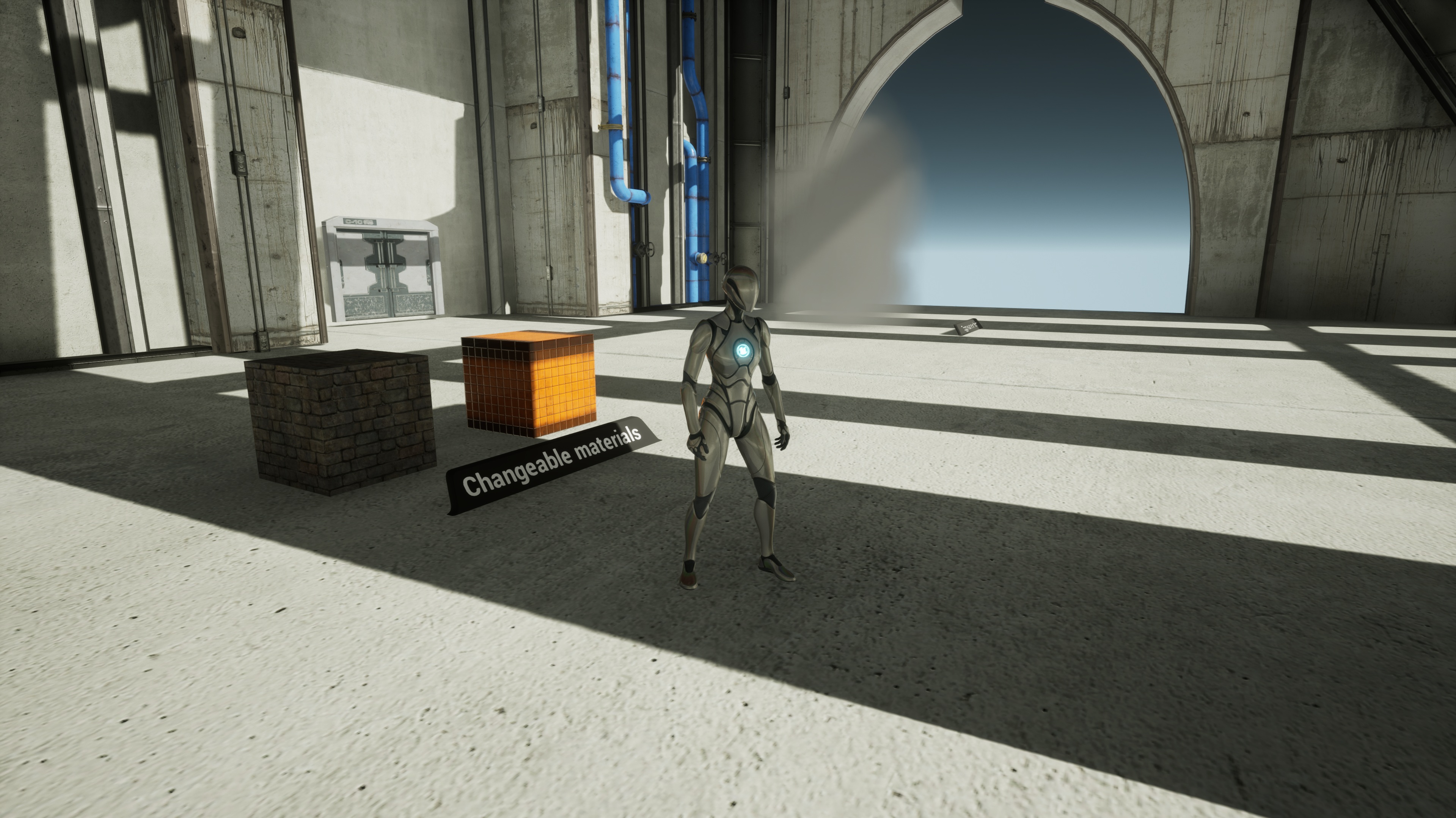 This project is my dynamic material demo showcasing interactive GUI elements, runtime material swapping, custom HLSL shaders, Niagara particle control and basic character animation. Explore the scene, change cube materials, toggle visual effects and experiment with dynamic interactions inside a small area.